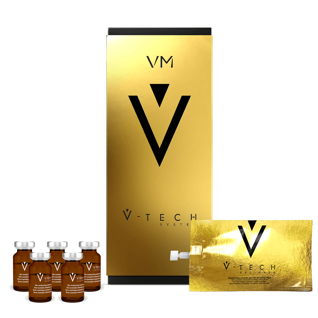 Italiassa kehitetty ja valmistettu V-TECH SYSTEM on markkinoiden puhtain ja ainoa eksosomi -hoito-ohjelma, joka suoritetaan 2-vaiheisena. Hoito-ohjelmaan kuuluu V-Tech Serum V-Tech Gel Mask -naamio.